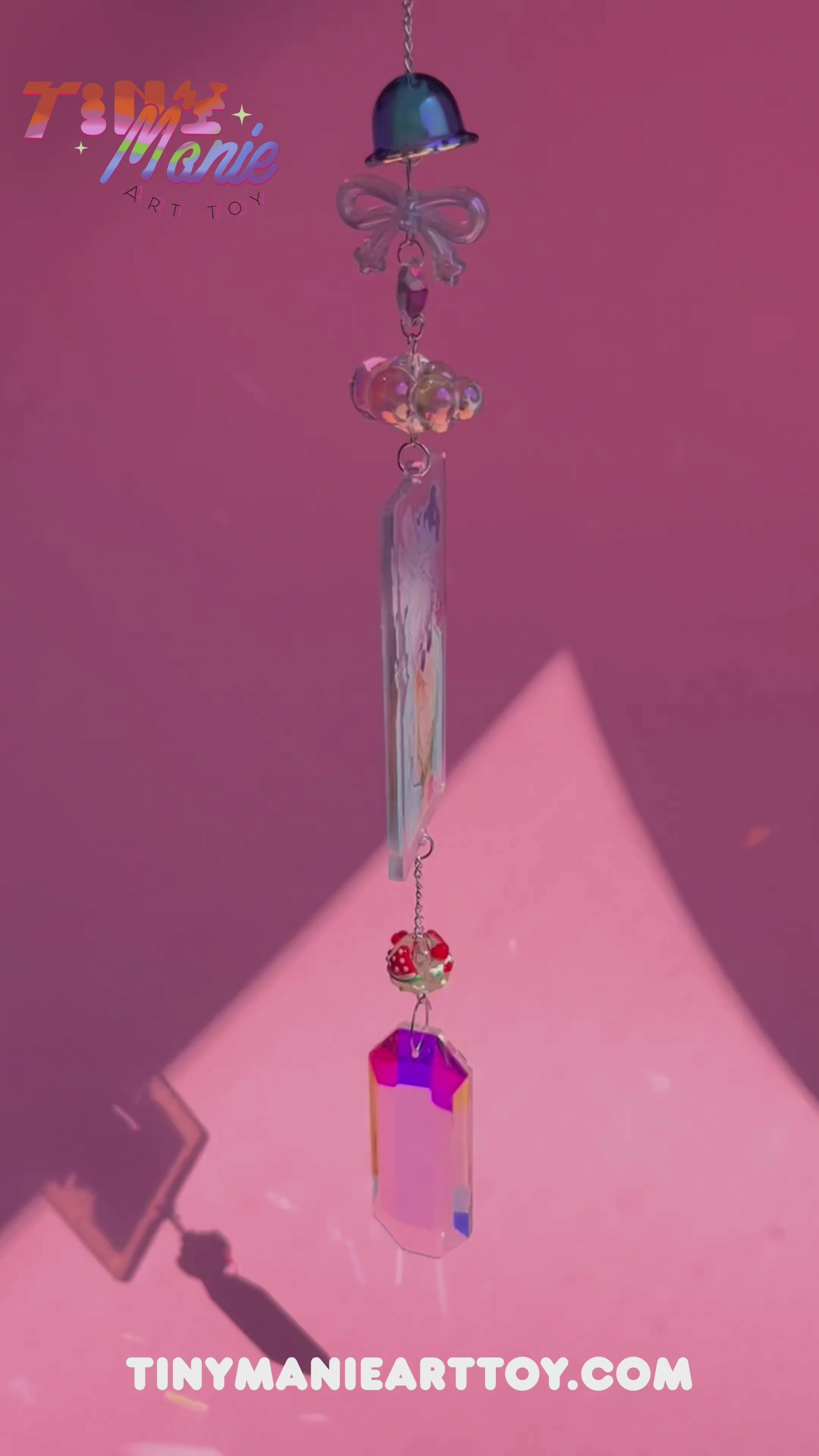 Transform your space into a haven of light and poetry with our Suncatcher, a unique hypnotic handcrafted creation by TinyManie Art Toy. Suspended near a window, this little treasure of glass and metal dances with the sunlight, casting dazzling rainbows and enchanting reflections that bring your room to life.
